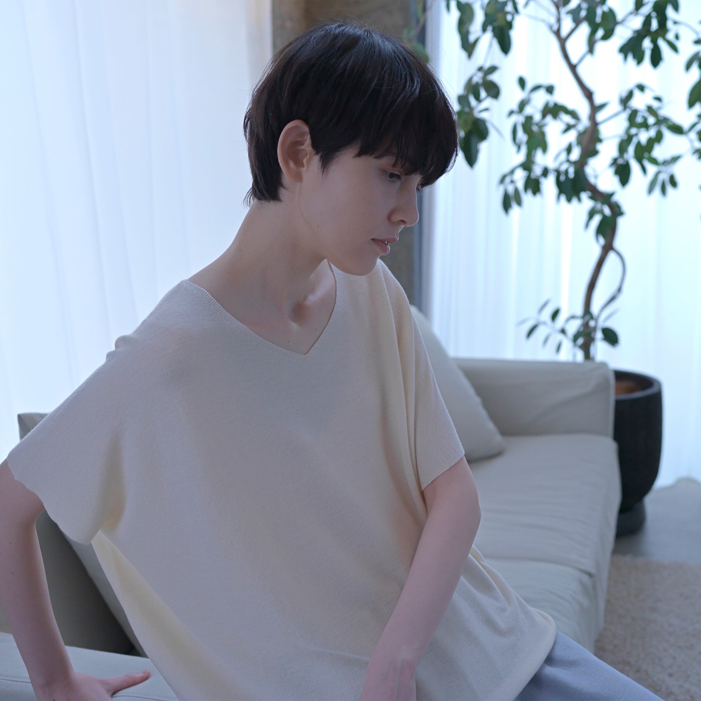 肌がふっと解き放たれる感覚。単なる衣類という枠を超え、肌の一部のように寄り添う一着です。